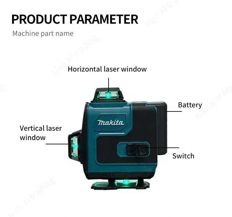 2) Push the main power switch forward to the ONposition and the machine starts to work. Thehorizontal window automatically opens and produces four horizontal laser rays;
