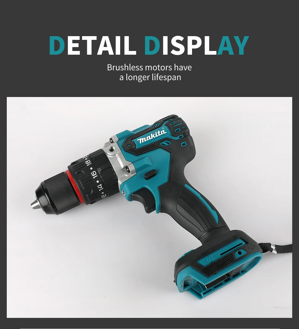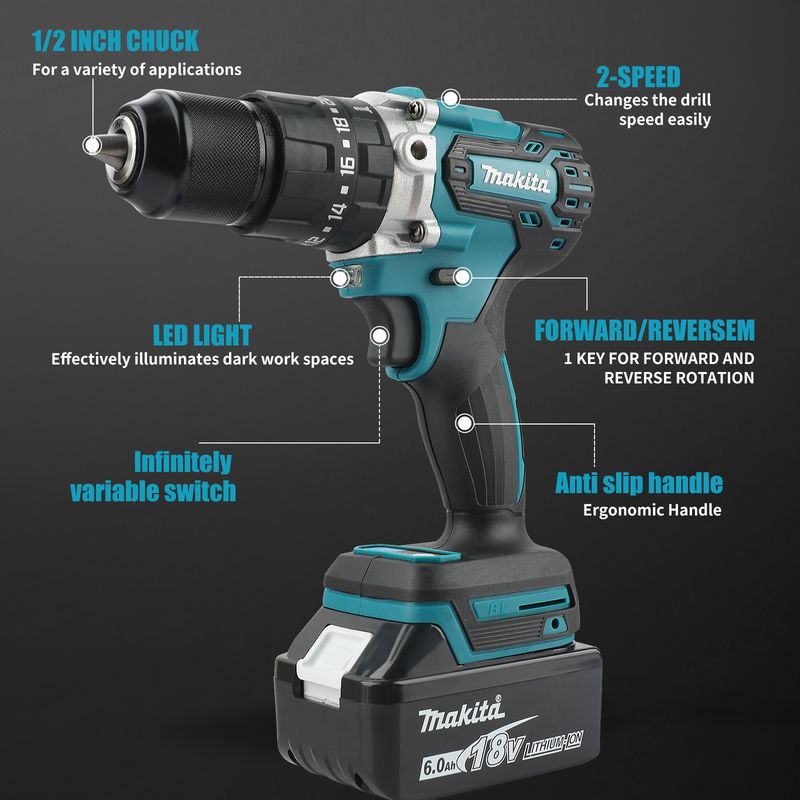 Makita 18V Brushless Drill Driver 60N.m Max Torque 20+1 Clutch 6.0Ah Battery Keyless Chuck for Home DIY & Construction Drilling