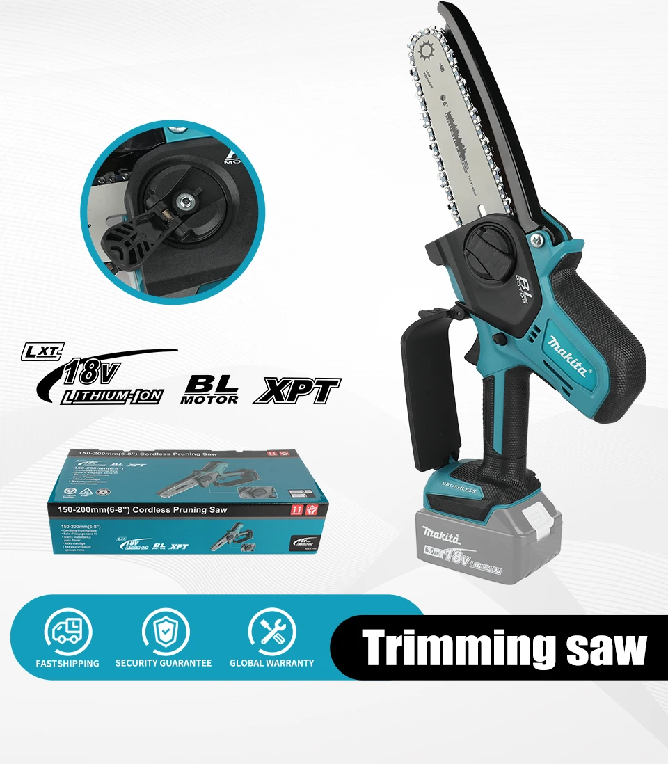 Makita 21V Cordless Chainsaw for Woodworking with Small Handheld Electric 6-inch Logging Sawzall Mini Portable Chainsaw