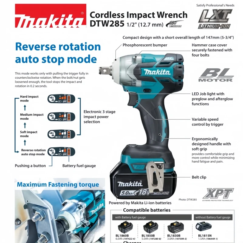 11. Strong compatibility enables Makita lithium battery to seamlessly interface with many Makita 18V tools. From electric drills to chainsaws, from angle grinders to impact wrenches, a battery can meet all your needs. This versatility not only facilitates users, but also reduces equipment investment and brings you more value.