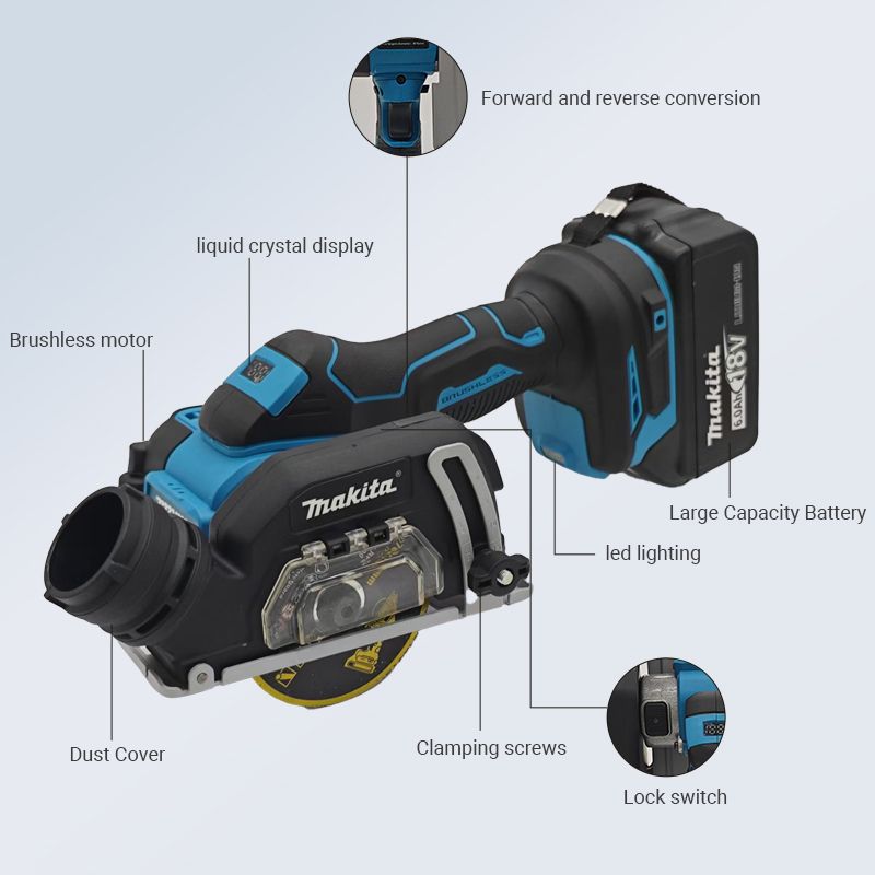 Makita Brushless Electric Angle Grinder Cordless Digital Display Cutting Machine Polishing Machine 18V Rechargeable Tools