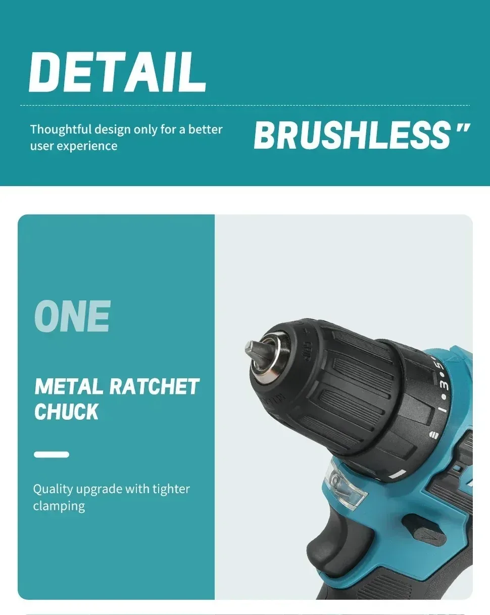 Equipped with a brushless motor, this drill offers efficient power and long-lasting performance for all your DIY projects.