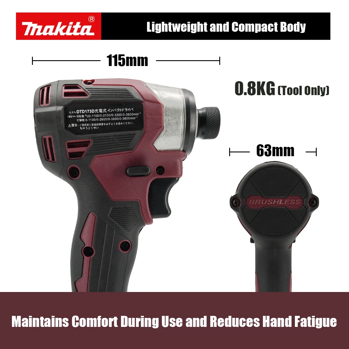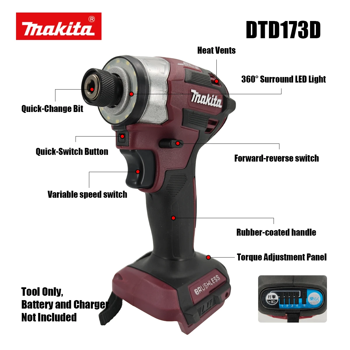 Makita DTD173 18V LXT Cordless Brushless Impact Driver 180 N·M Wood Bolt T-Mode Electric Drill Rechargeable Power Tools