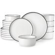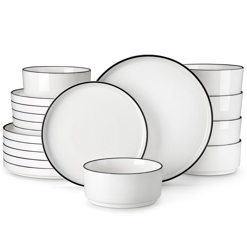 MALACASA 12/16/18/24 Piece Dinner Plates Sets Black Rim Half standing edge Dinnerwar with 4/6PCS Dinner Plate/Dessert/Soup/Bowl