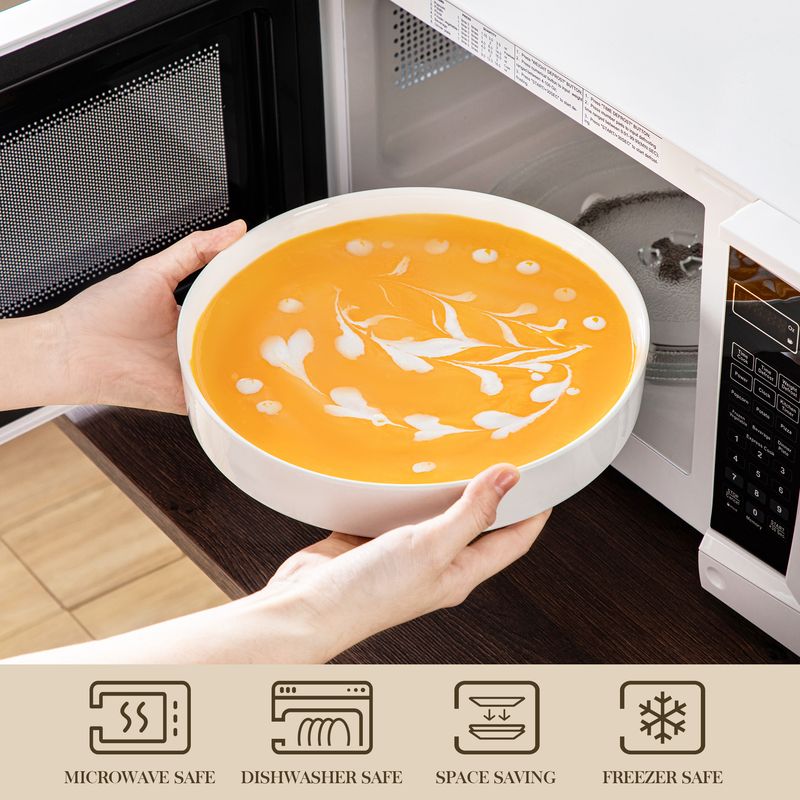 • 【UPGRADED QUALITY & KEEP HEALTHY】A type of premium LEAD-FREE, CADMIUM FREE and NON-TOXIC Porcelain which are anti-chip, scratch resistant, bright surface, easy to clean and maintain, longer service life. It can withstand high temperatures without easily cracking or deforming.