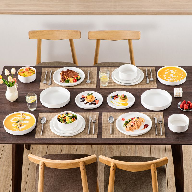 MALACASA dinner service sets are made of ivory white porcelain, certified lead and cadmium free for everyday use. With classic square shape, making the dining table beautiful and elegant.