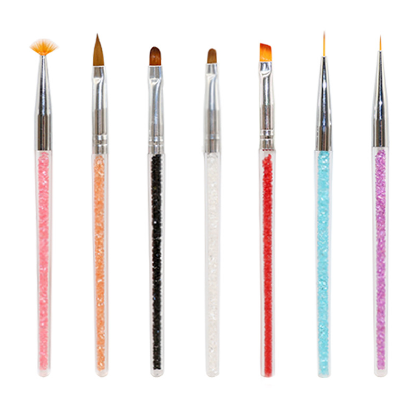 Manicure tool crystal engraved phototherapy pen Painted drawing line gradient point flower pen Silver flat head