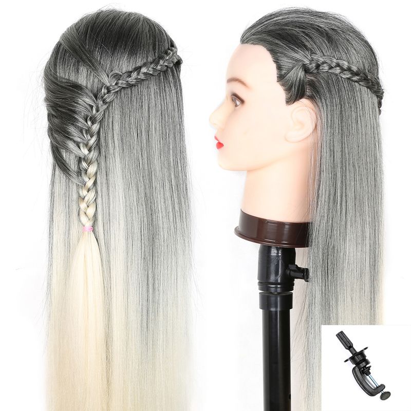 Mannequin Head Model With Long Synthetic Hair, Manikin Head Styling Hairdresser Training Head, Doll Head for Braiding Practice