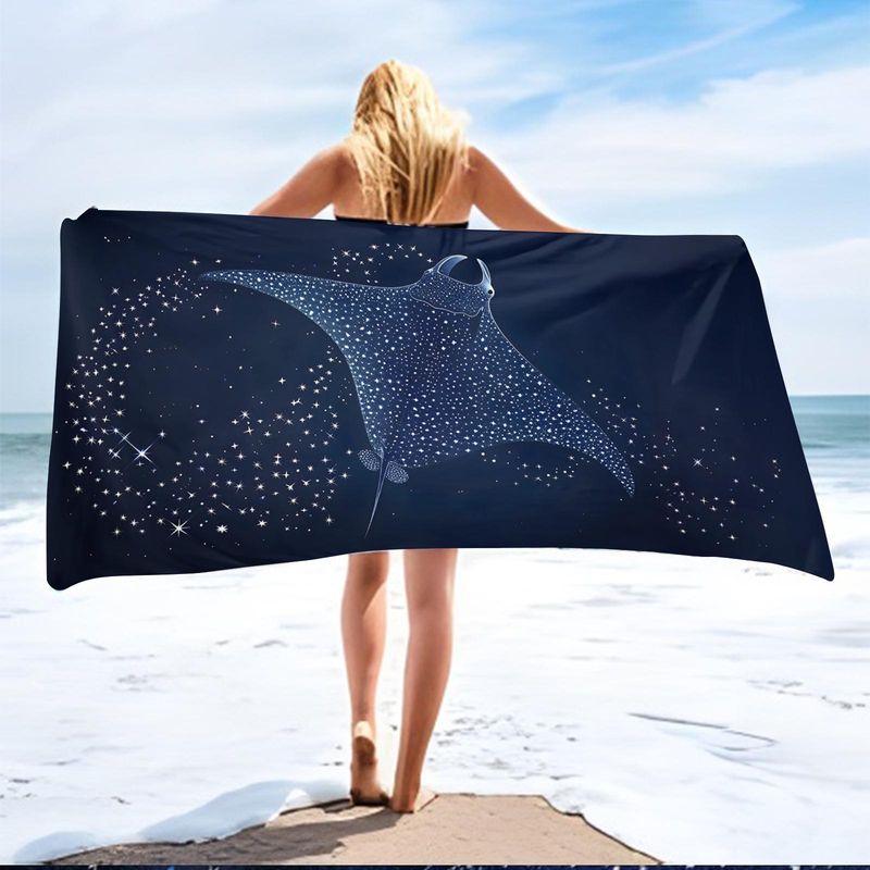 Manta Ray Towel with Starry DesignMicrofiber terry bath towels for yoga, travel, swimming, fitness and camping