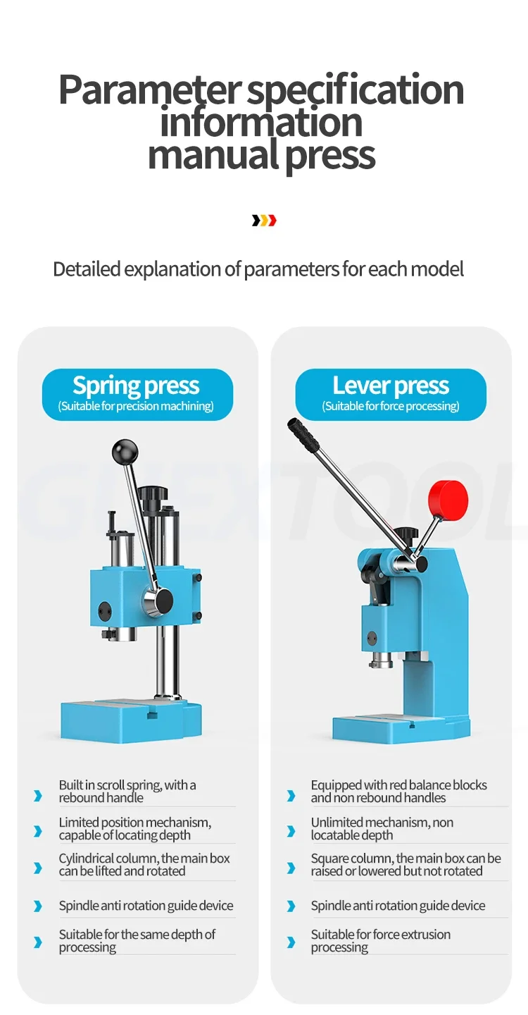 Manual Arbor Press 0.3 Ton Manual Leverage Mountable Bearings Cast Iron for Riveting, Squeezing, Punching, Bending, Pressing