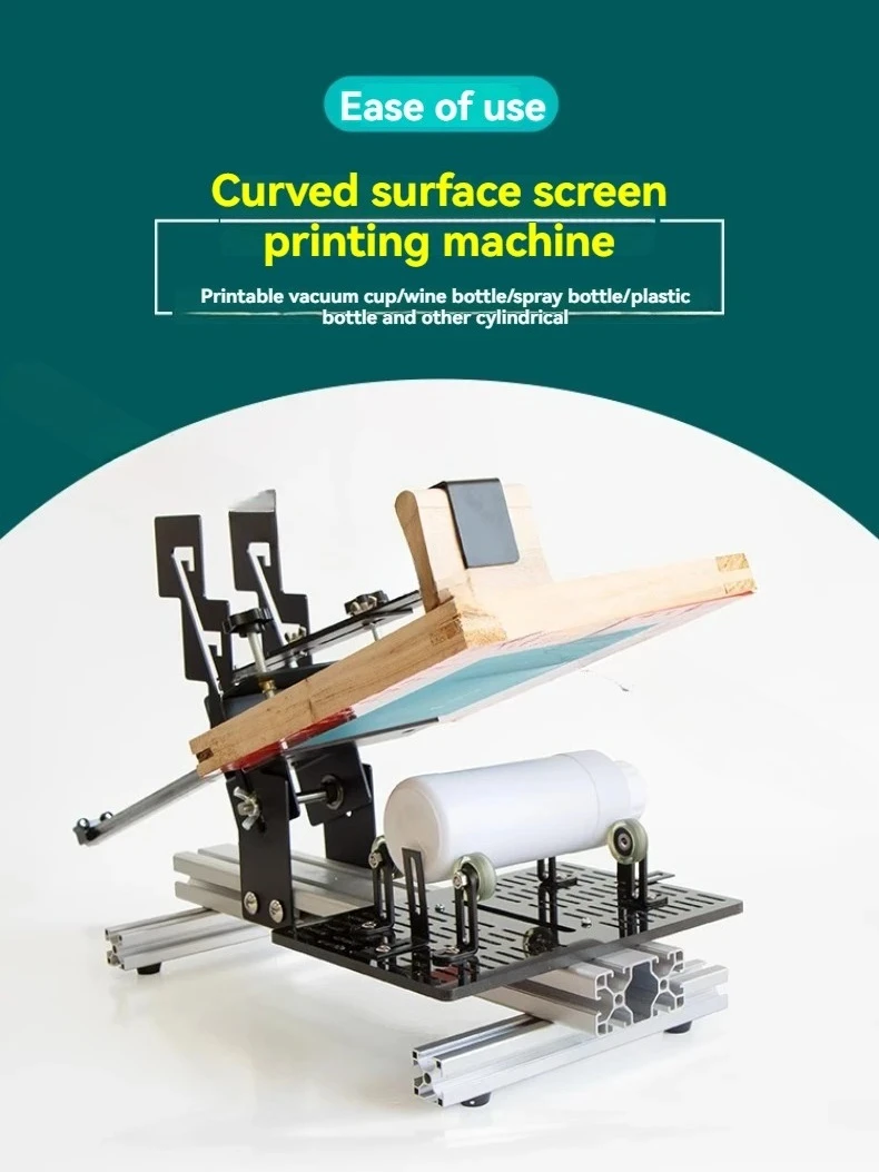 Manual Cylinder Printing Machine | for Bottles/Tumblers/Cosmetic Packaging Precision Curved Screen Printer