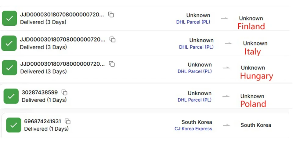 Delivery times for overseas warehouses in South Korea and Europe