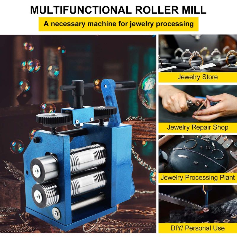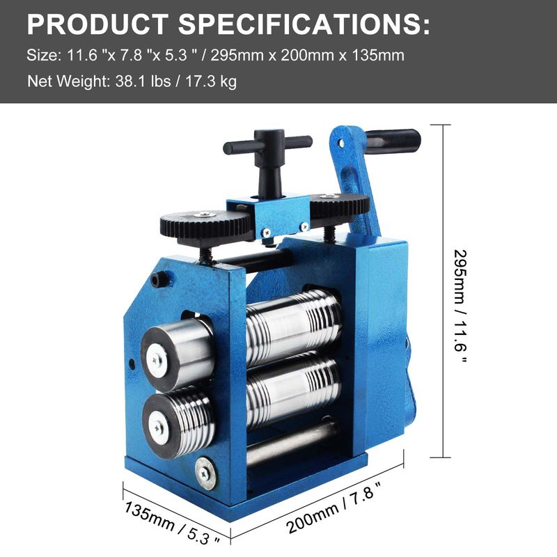 Durable Cast Iron & Steel: This jewelry rolling mill machine comes with a cast-iron frame and chrome steel forged rollers for sturdiness and long service life. The blue powdered coating on the surface provides good wearability and corrosion resistance to enable the device to work steadily.