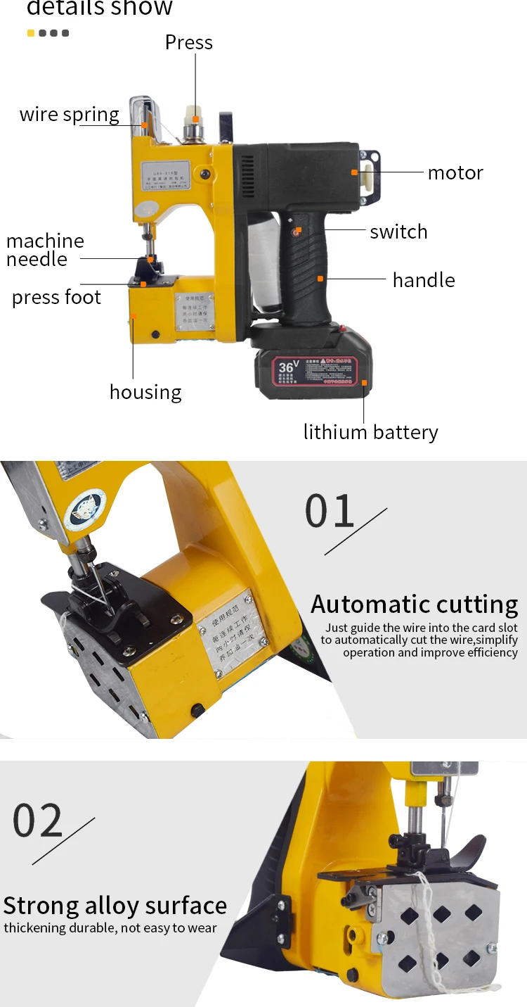 Manual Machines 14mm Max. Sewing Thickness Hand Electric Sewing Machine Sealing Bag Sack Closer Packing Battery Mechanical