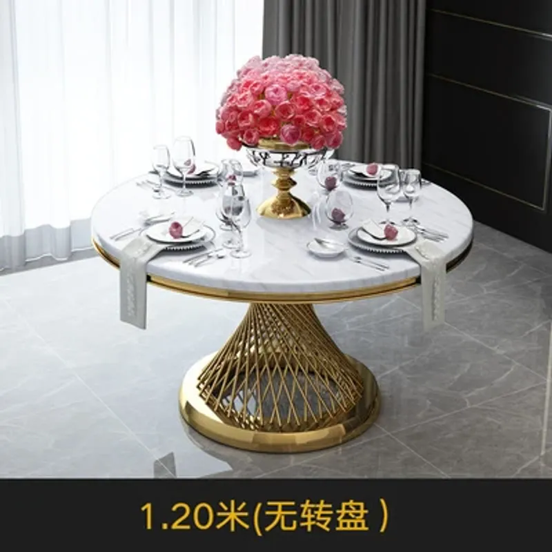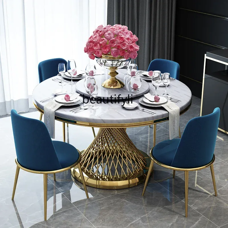 Marble Light Luxury round Dining Tables and Chairs Set Modern Stainless Steel Household Minimalist Dining Table with Turntable