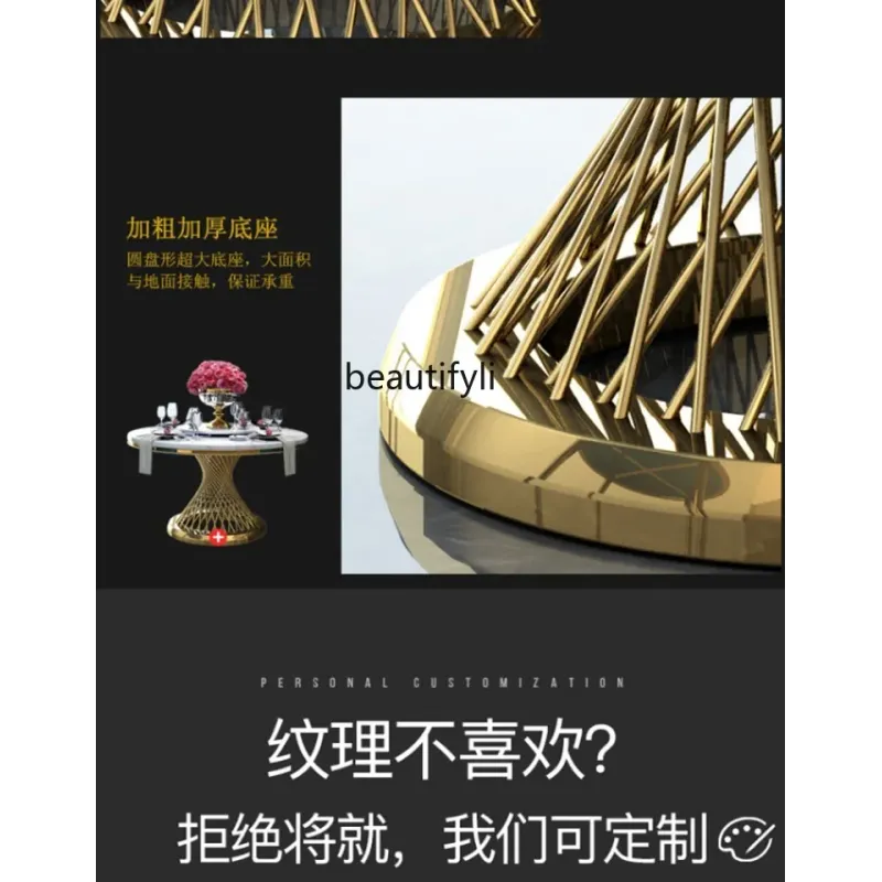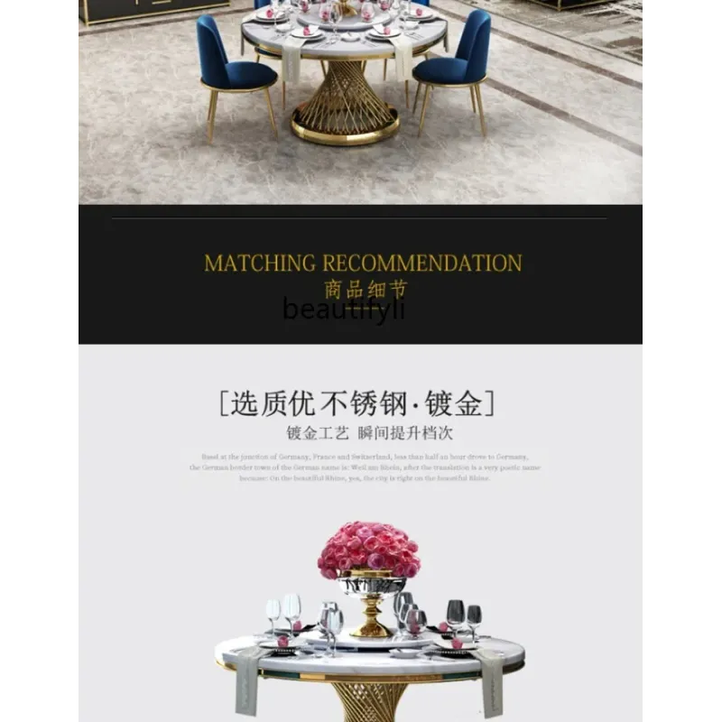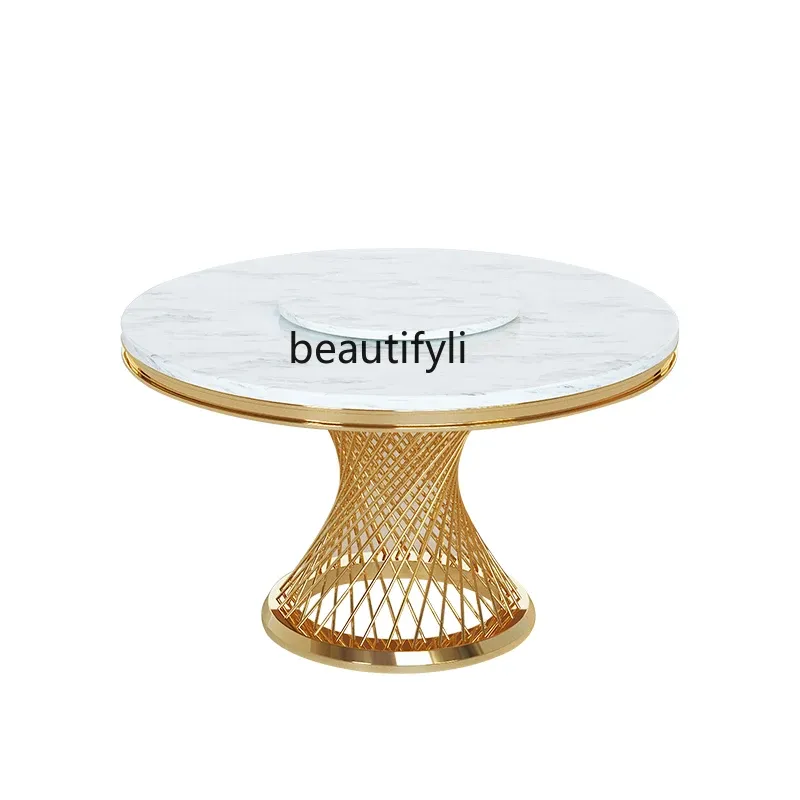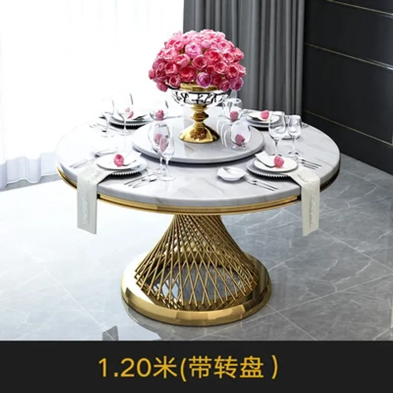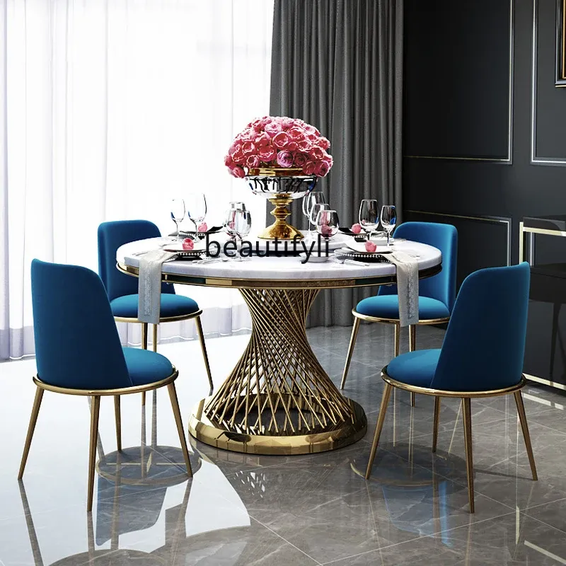 Marble Light Luxury round Dining Tables and Chairs Set Modern Stainless Steel Household Minimalist Dining Table with Turntable
