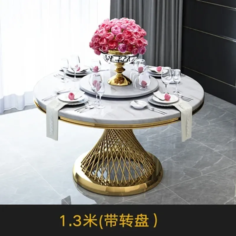 Marble Light Luxury round Dining Tables and Chairs Set Modern Stainless Steel Household Minimalist Dining Table with Turntable