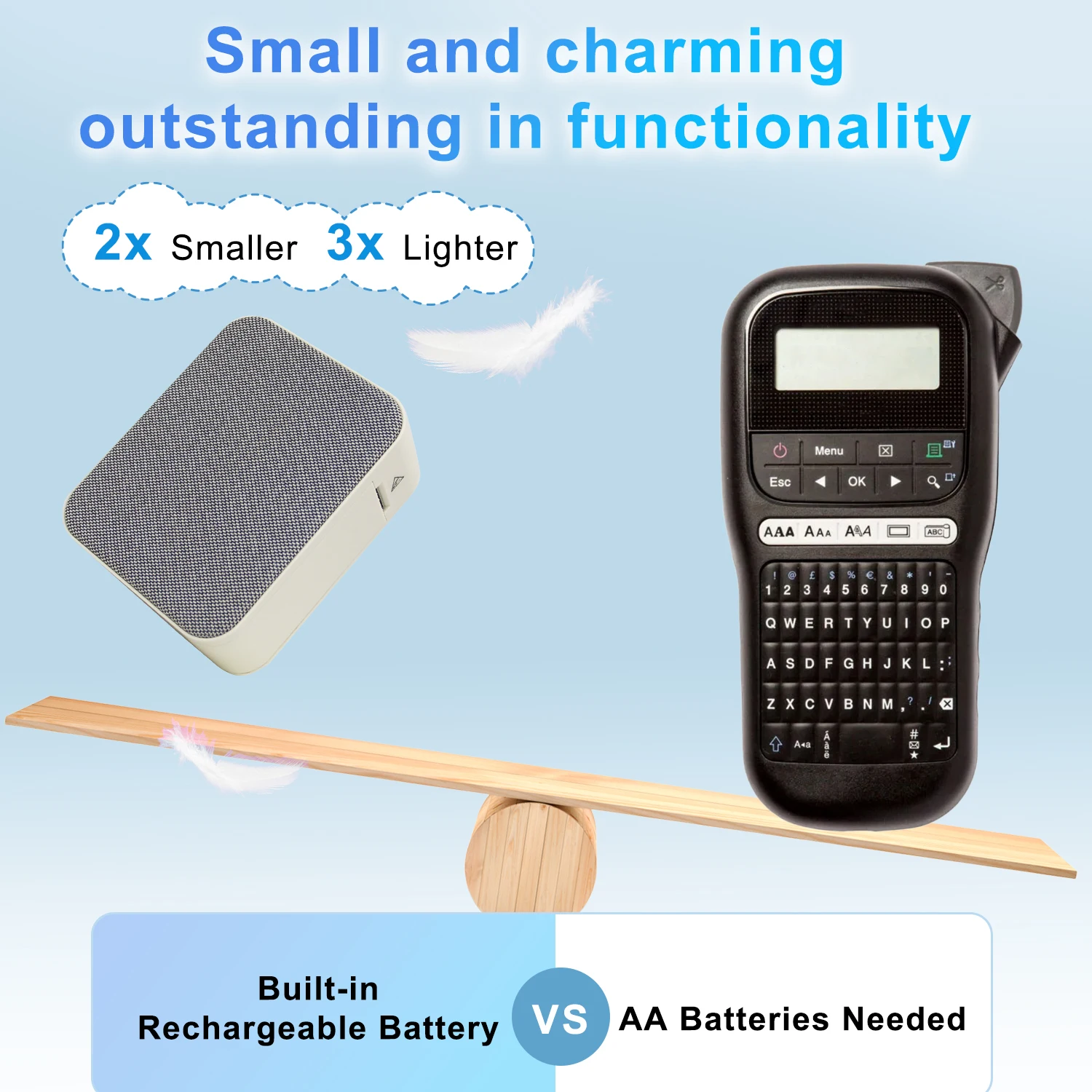 Compared with the traditional label makers, this portable label maker is smaller and smarter. Compact and lovely design and you can take it into your pocket, and print high quality labels and stickers anytime, anywhere.