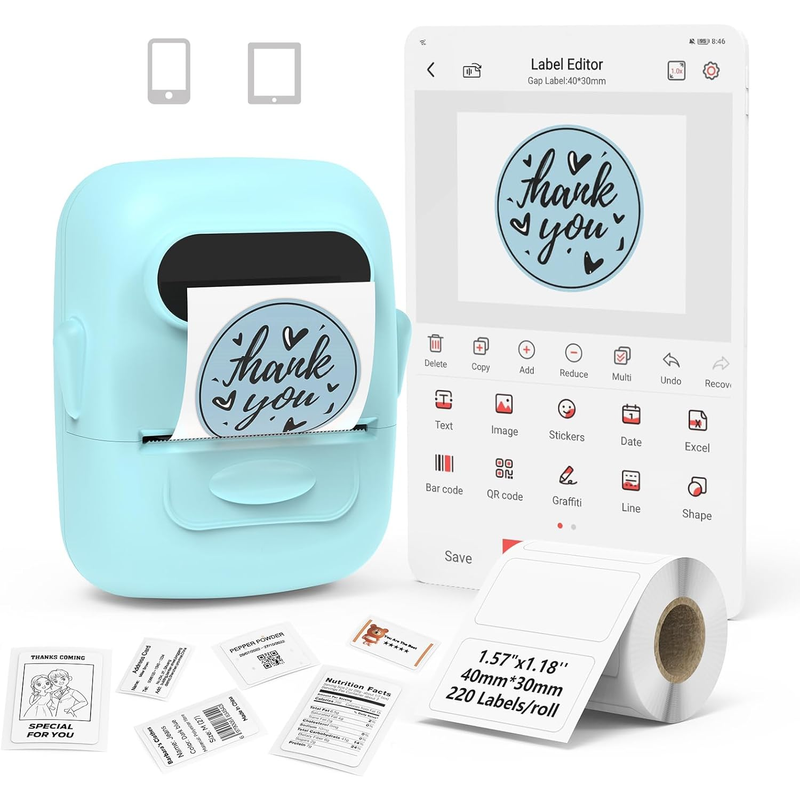 【Multifunction Label Makers】Print Width from 0.47 to 1.96 inch(15mm to 57mm), You can print many types of labels: Price labels, clothing labels, address labels, name tags, category labels, cable labels, jewelry labels, and Thanks stickers!