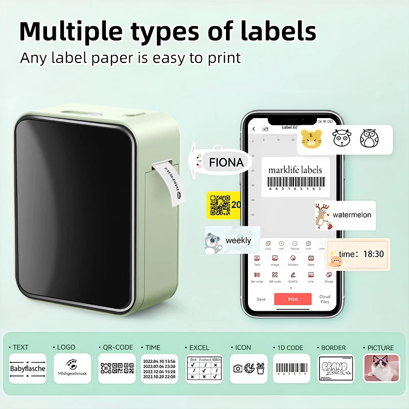 Marklife Thermal Label Printer D110 B21 P15 Mini Protable Bluetooth Adhesive Label Printer Maker For Gift/Diy Creative/Marking