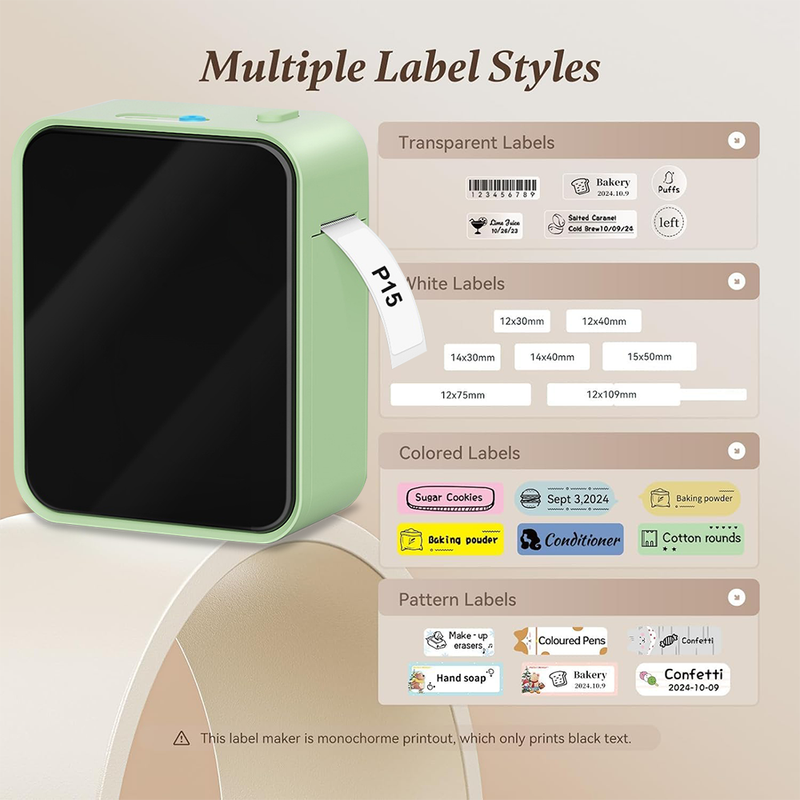 Maximum width of printed labels: 15 millimeters