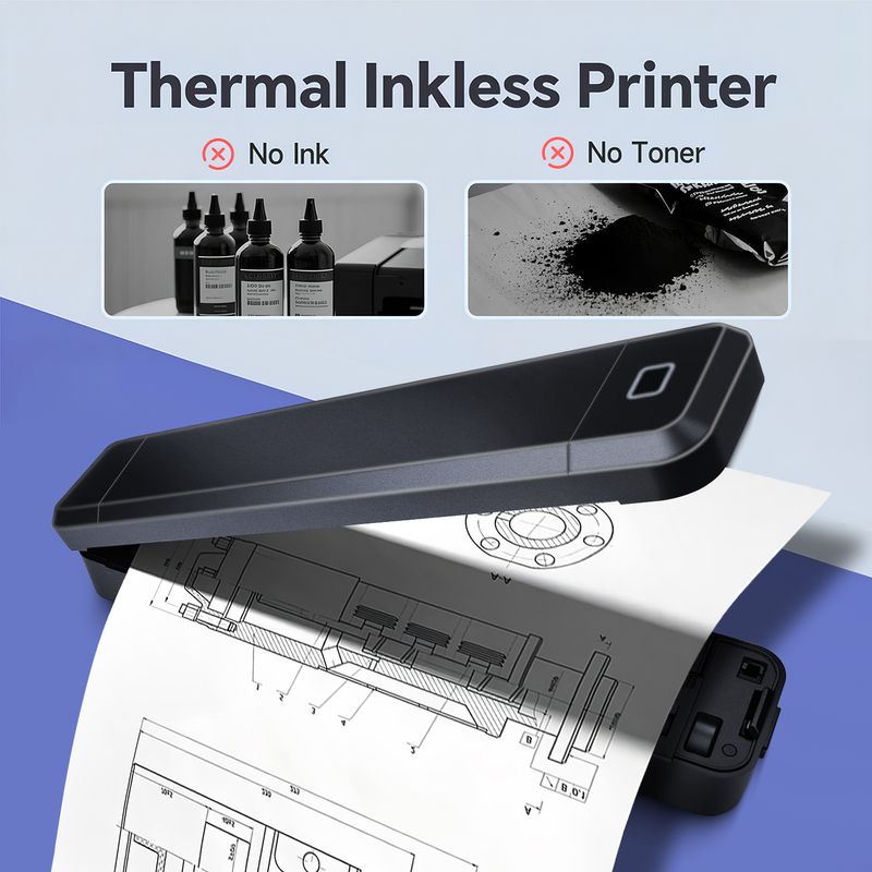 2. Portable A4 Printer,ideal for printing PDF file, test paper, webpage, contract, photo, picture, etc. an excellent assistant for study and office work.