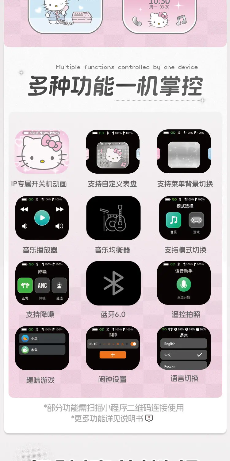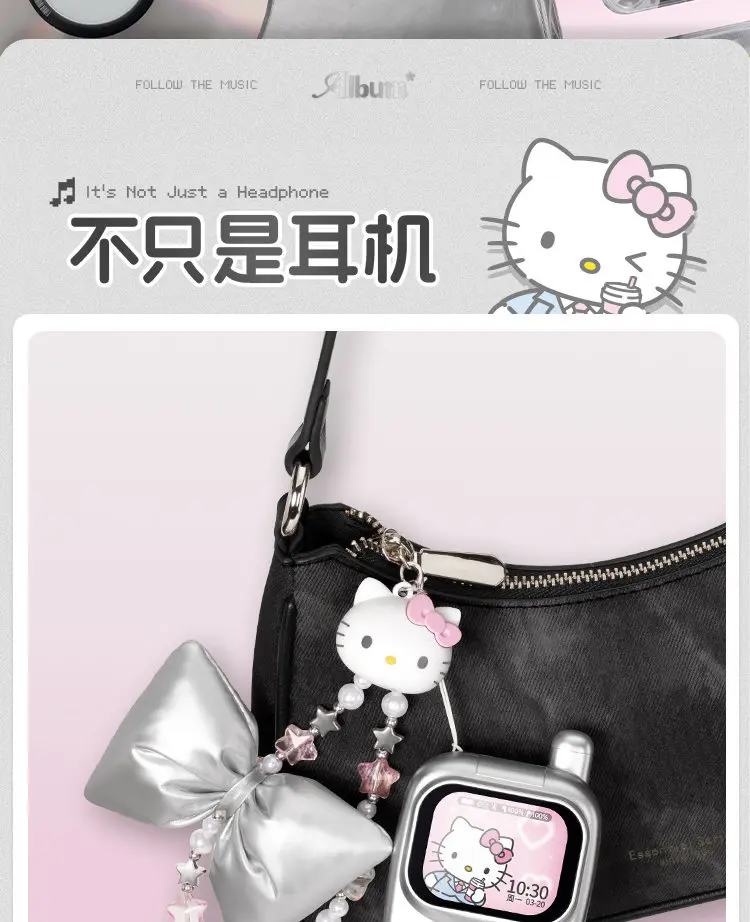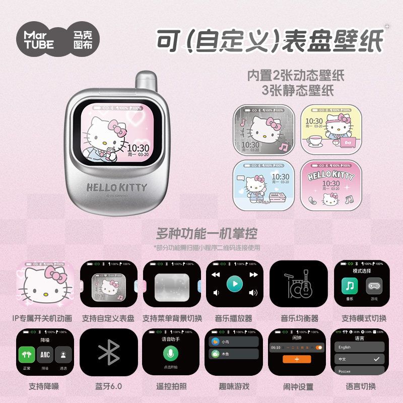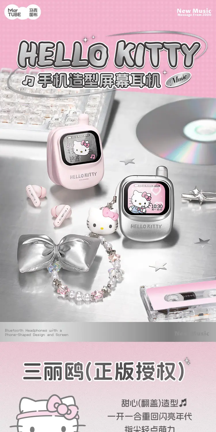Martube Sanrio Hello Kitty Screen Display Smart Bluetooth Earbuds In-Ear Hi-Fi Sound Noise Cancelling Headset Birthday Toy Gift