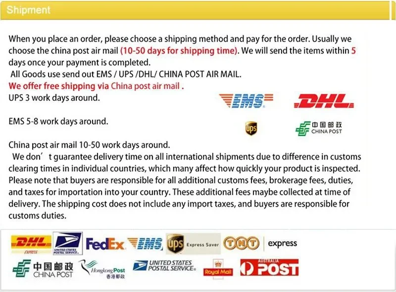 Please note that delivery times are estimates and may vary due to customs procedures, carrier delays, weather conditions, or other unforeseen circumstances.