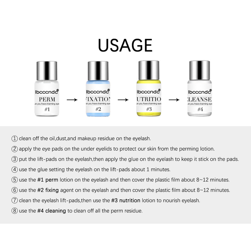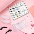 The kit includes perm agents, fixation, nutrition, cleanser, false lashes glue, cleaning tool and cleaning pads.