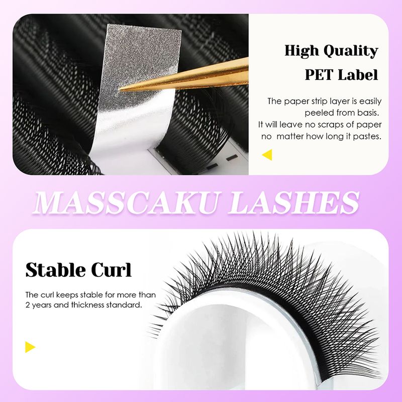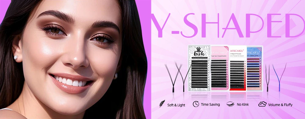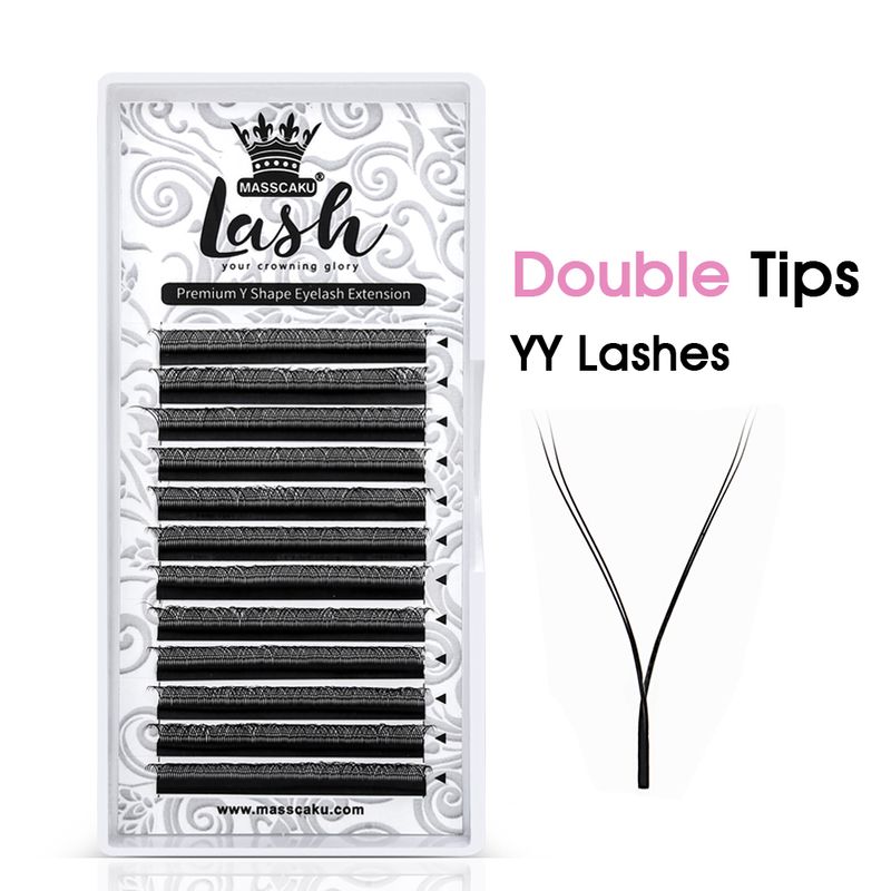MASSCAKU U Shape YY False Eyelashes 8-15mm Mix C D Curl Double Tips Lashes Extension Hand-wowen Individual Eyelash Wholesale