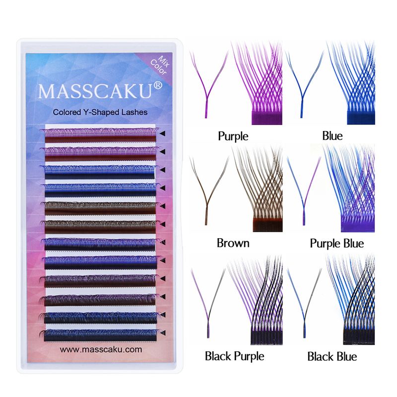 MASSCAKU U Shape YY False Eyelashes 8-15mm Mix C D Curl Double Tips Lashes Extension Hand-wowen Individual Eyelash Wholesale