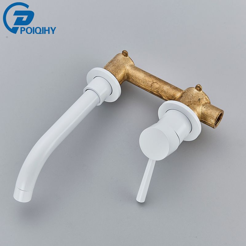 Matte Black Basin Faucet Brass White Bathroom Sink Faucet Wall Mounted Black Mixer Tap Single Handle Vessel Sink Water Faucet