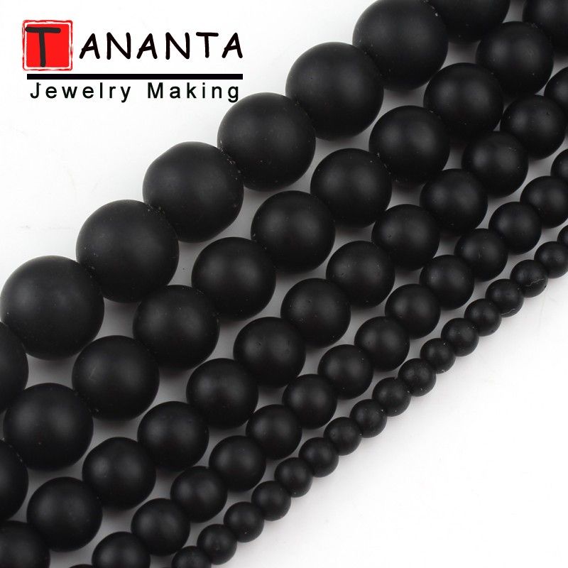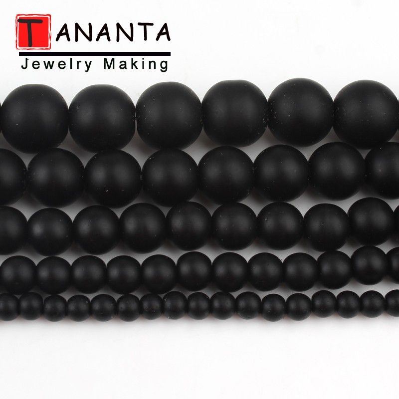 Matte Natural Black Agates Onyx Round Loose Stone Beads For Jewelry Making DIY Charm Bracelet Necklace 4 6 8 10 12mm 15 inch