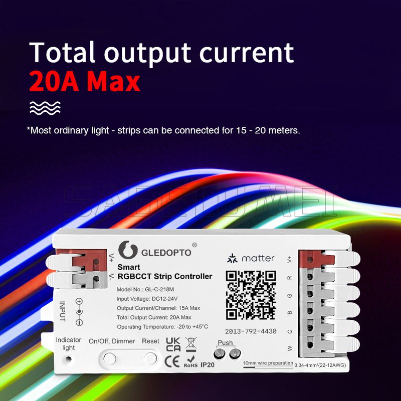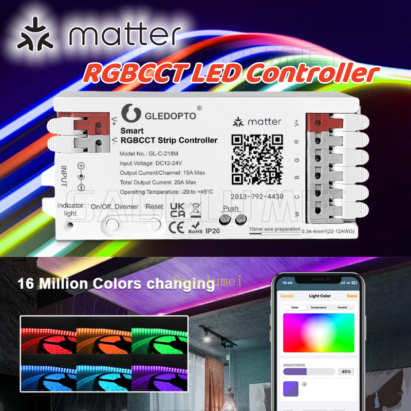 NEW Matter RGBCCT LED Controller for Analog LED Strip APP Voice Control RGBW RGB Work with Apple Homekit Echo DC12-24V 15A MAX