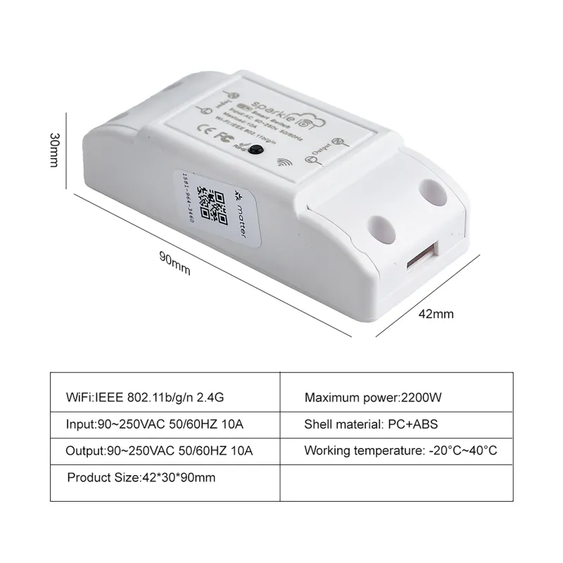 App control: Device control can be achieved through Alexa, Apple Home, Google Home, Smart things or other apps that have already solved the Matter SDK. Device reset: Press and hold the switch button for 5 seconds to reset, with the indicator light flashing 3 times.