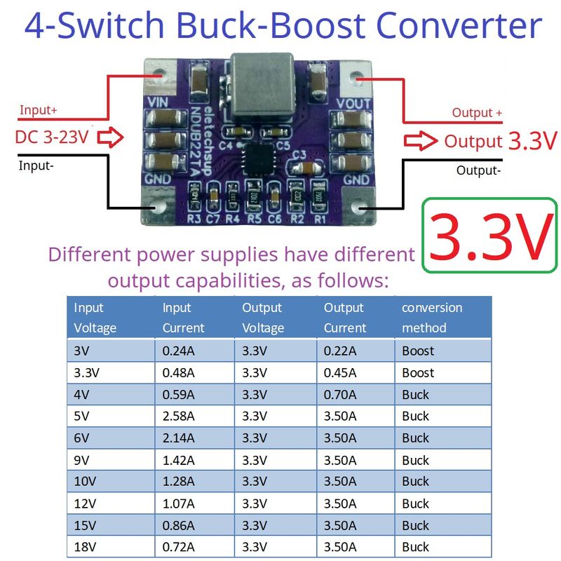 Product Name:Max 3A Synchronous 4-Switch High Efficienc DC-DC Buck-Boost Converter Module 3-23V to 3.3V 4.2V 5V 6V 10V 12V Voltage Regulator
