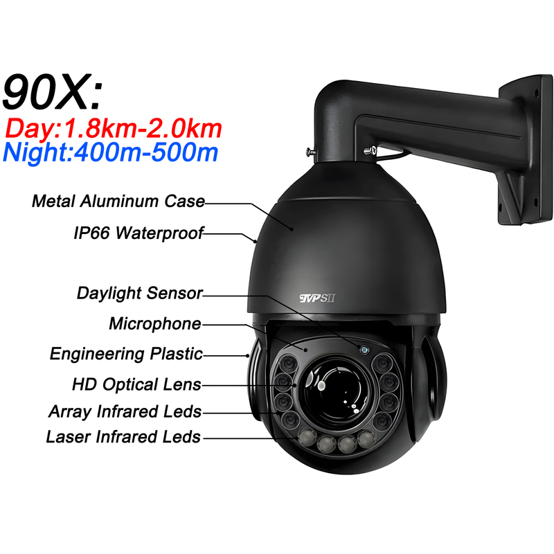 Max.512G Laser Infrared Metal Auto Tracking Cruise 8MP 4K 90X Optical Zoom 360° Audio POE PTZ Speed Dome Surveillance IP Camera