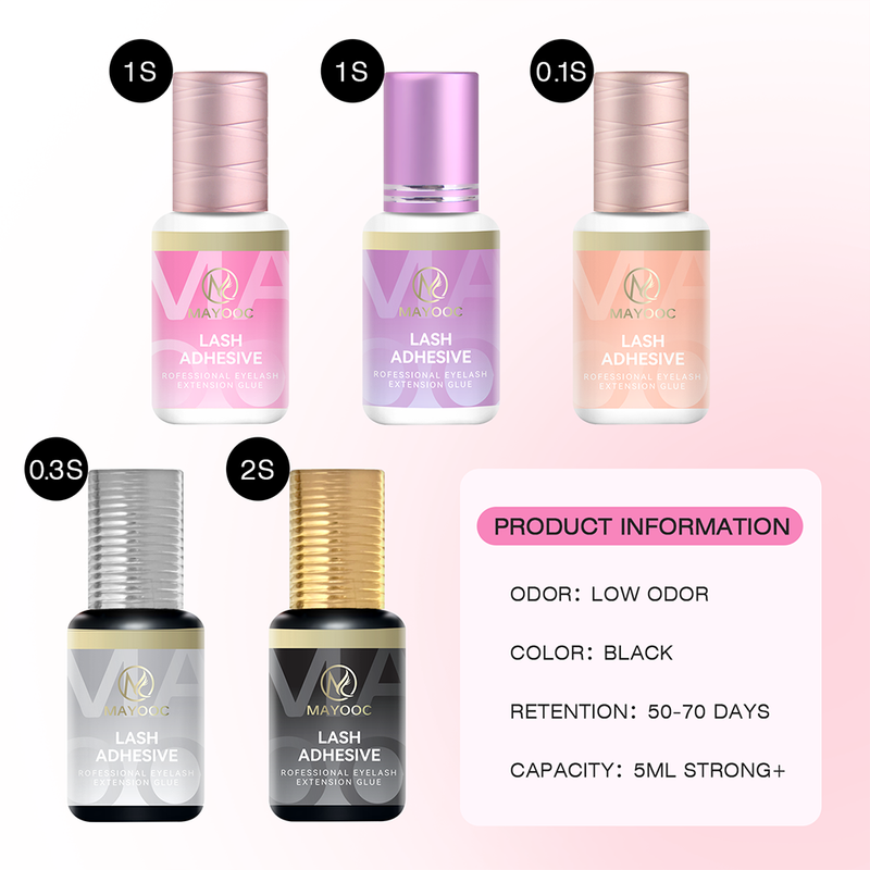 MAYOOC 0.3 Sec Eyelash Extension Glue Fast Dry Individual Lashes Glue Sensitive Eye Black Eyelash Glue Lash Free Custom Logo