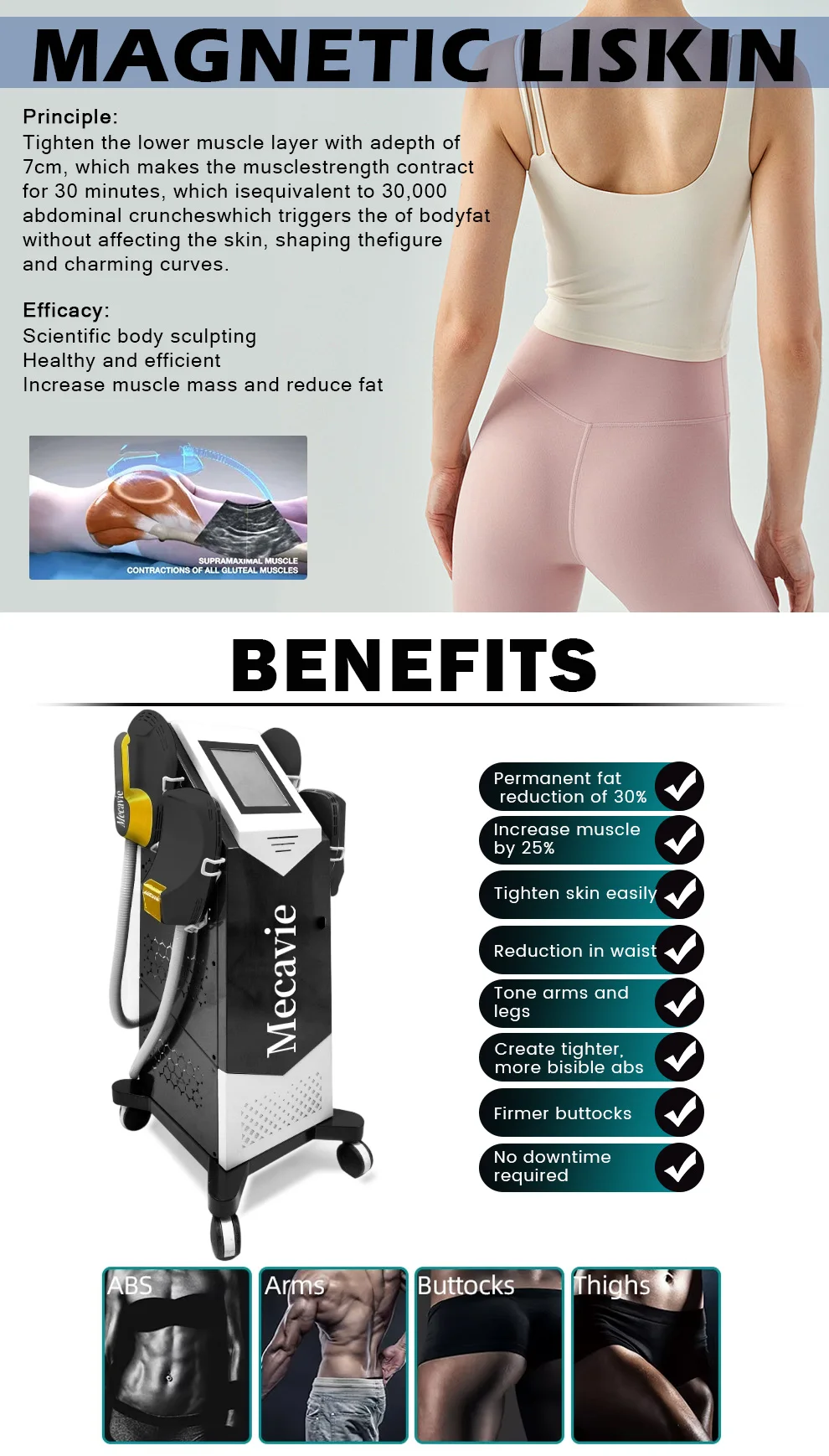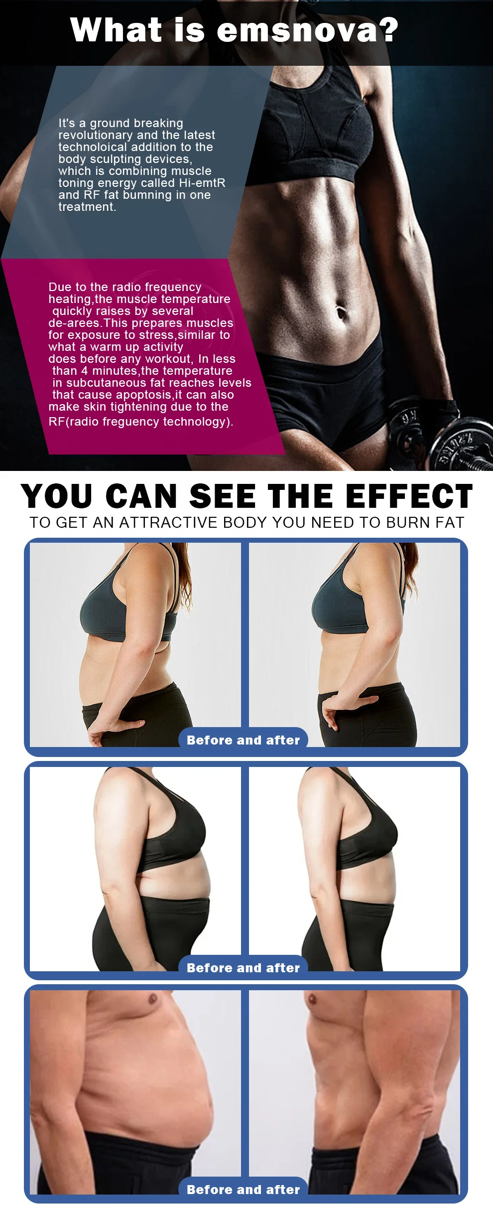 The energy of electromagnetic field output by EMSzero, a non traumatic technology, can safely generate the same frequency resonance with muscle neurons, with the purpose of triggering super muscular contraction and increasing muscle mass. Because the electromagnetic wave energy directly reaches the deep structure inside the muscle, it can directly and effectively build muscle and burn fat. EMSzero is a new star in the scientific and technological field, widely used by the beauty industry.