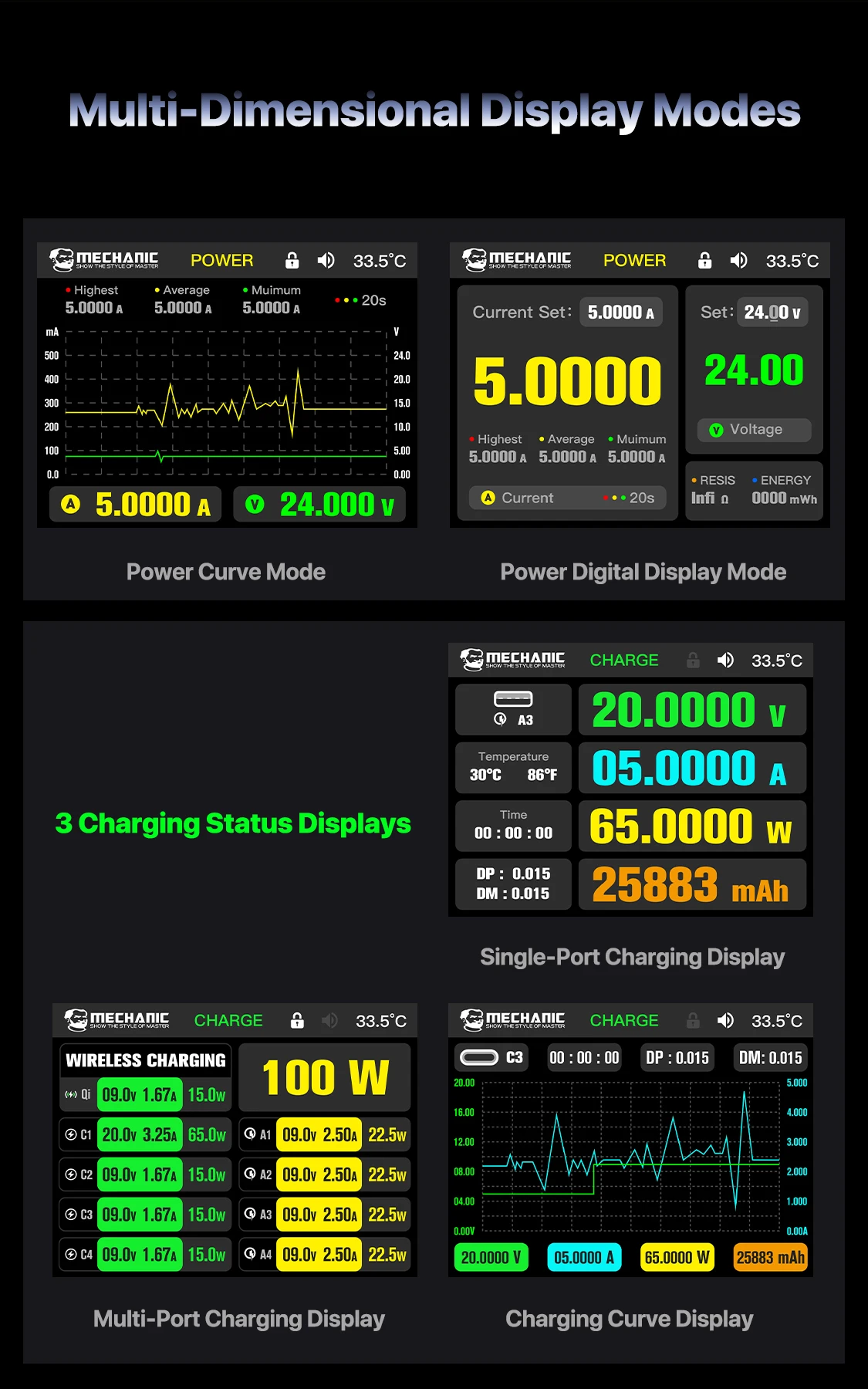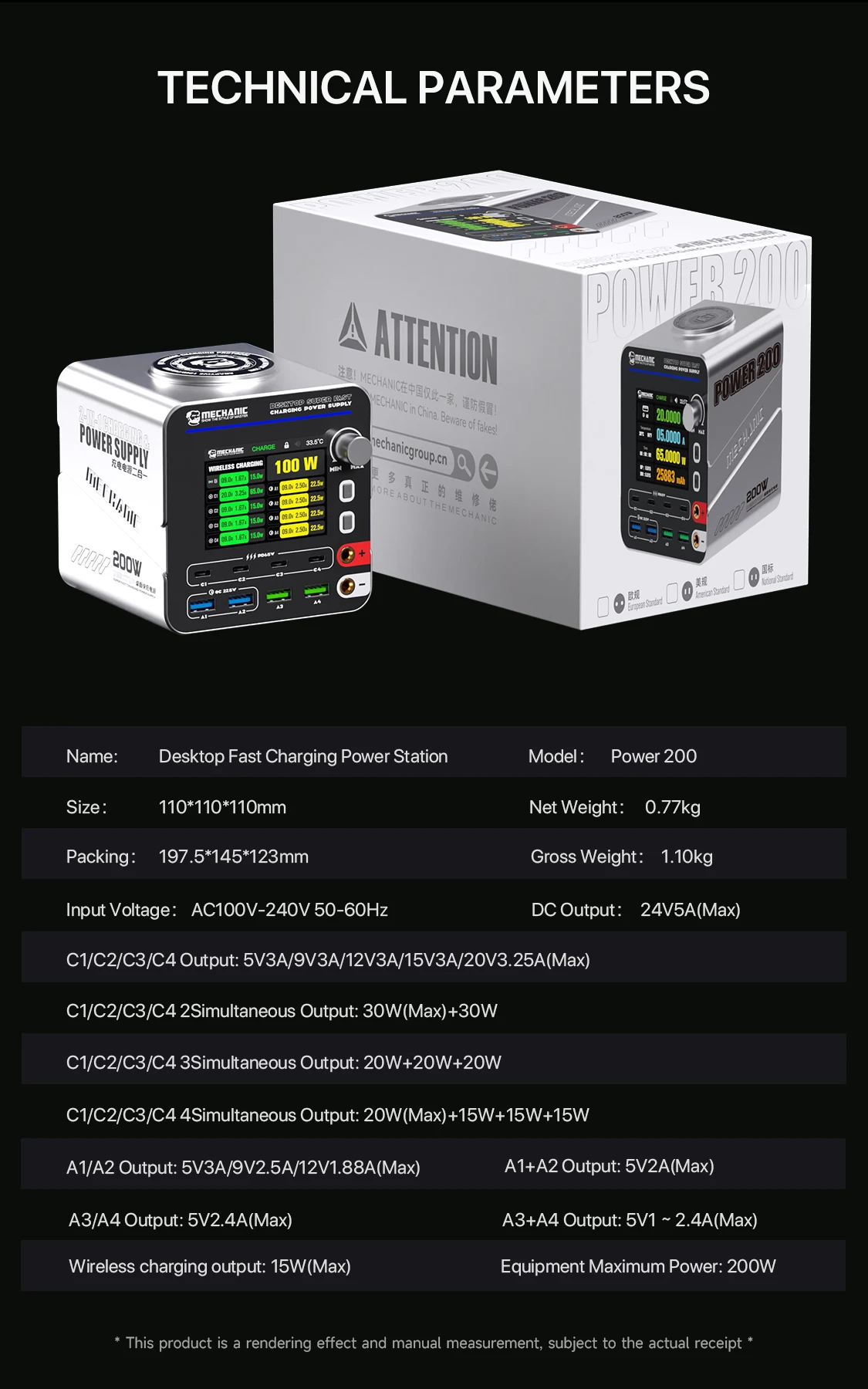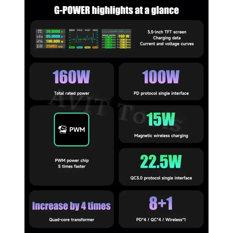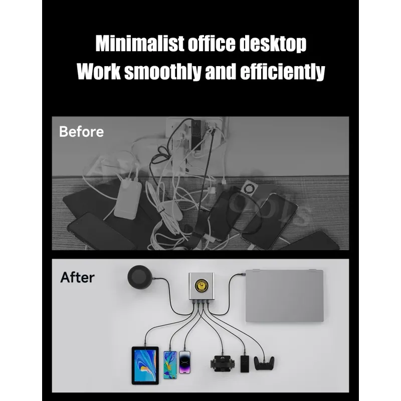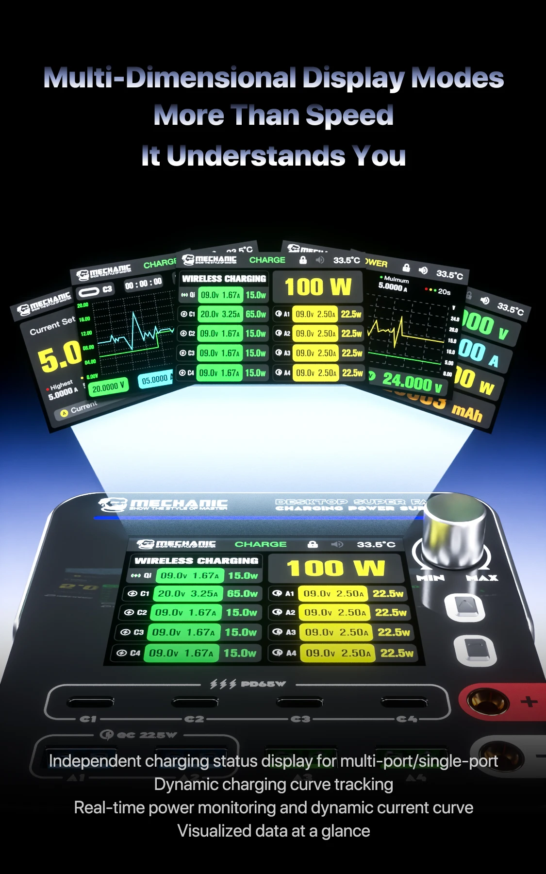 MECHANIC G-Power Nitride-Gallium Desktop Super Fast Charging Station  Multi-Port Real-Time Power 200 Display Wireless Charging