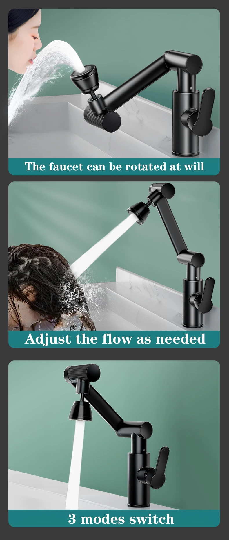 Mechanical Arm Universal Faucet Bathroom Kitchen Splashproof Faucet Bathroom Countertop Basin Hot and Cold Tap Faucet Accessorie