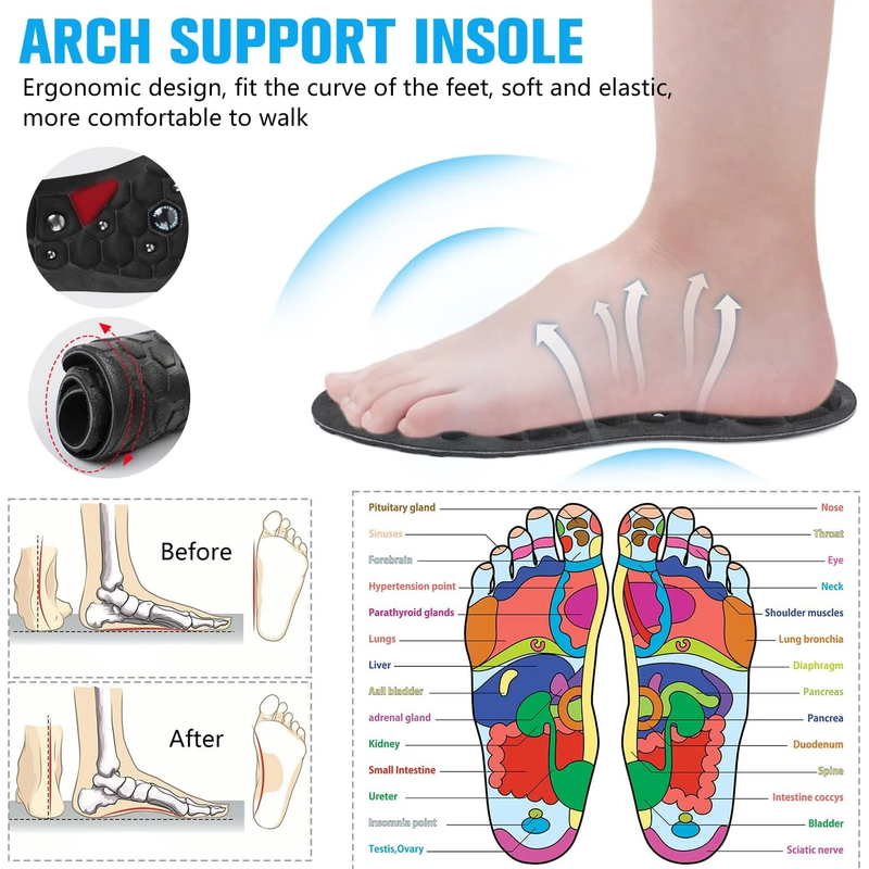 Transform your regular canvas shoes into a soothing massage experience with our magnetic insoles. These insoles are designed to absorb shock while walking or running and can be used for long-term use. Perfect for festivals, these insoles bring excellent comfort to your feet.