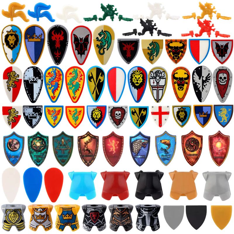 Medieval Figures Military Accessory MOC Building Block Knight Soldier Shield Armor Weapon Feather Army Mini Brick Toys Gift K008