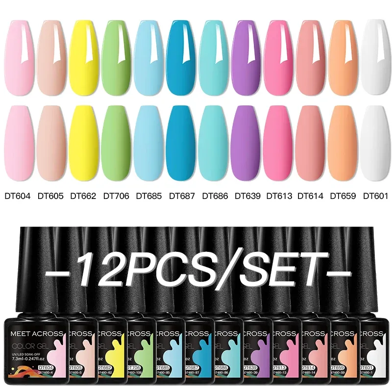 MEET ACROSS 12Pcs Gel Nail Polish Set 7.3ml Pink Blue Neon Macaron Color for Nails UV Gel LED Nail Art Varnish Manicure Kit