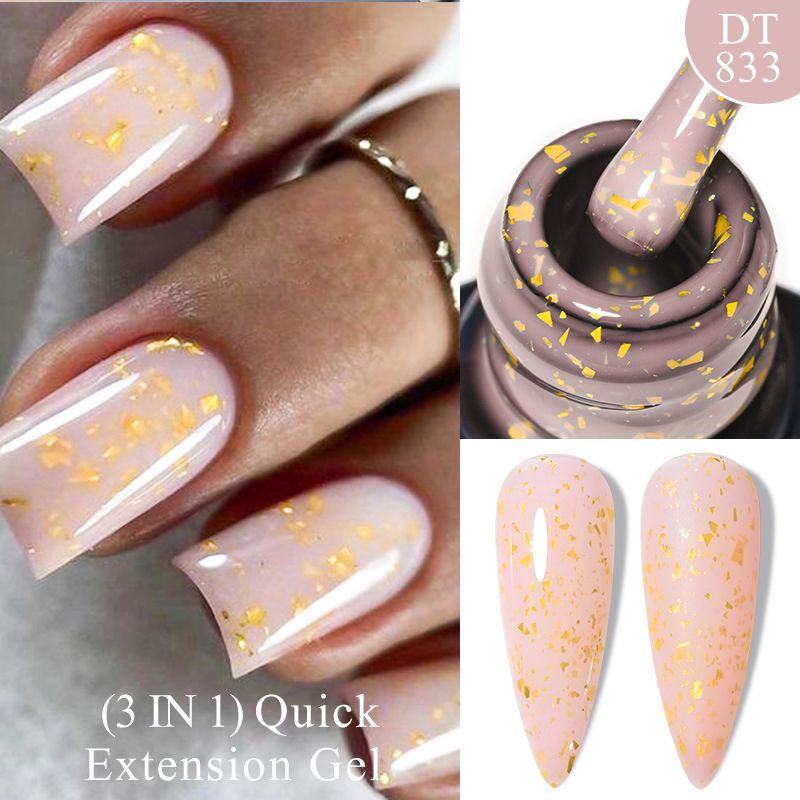 MEET ACROSS 7ml Milk White Rubber Base Gel Silver Gold Pink Foils Glitter Semi-Permanent Nail Art Gel Varnish For Nails Manicure