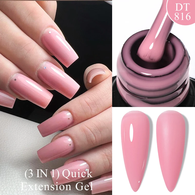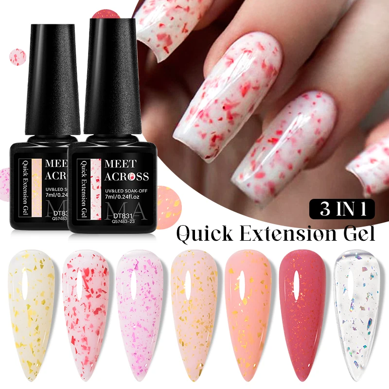 MEET ACROSS 7ML Pink Glitter Quick Extension Gel Nail Polish Gold Foils Effect Vernis Semi Permanent UV Gel Nail Art Hard Gel