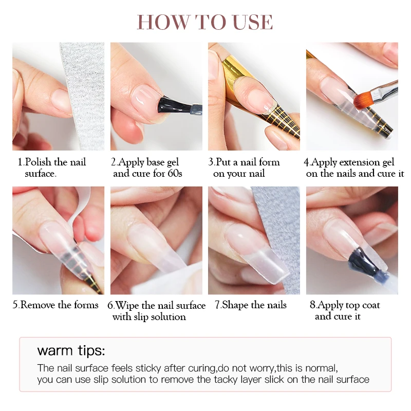 Step 4:Apply crystal extension UV Gel on nail mold,use nail art pen with slip solution to make gel smooth.