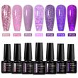 MEET ACROSS 7pcs Glitter Gel Nail Polish Set Nude Pink Reflective Soak Off UV Gel Kit Varnish Nail Supplies Manicure DIY Design