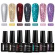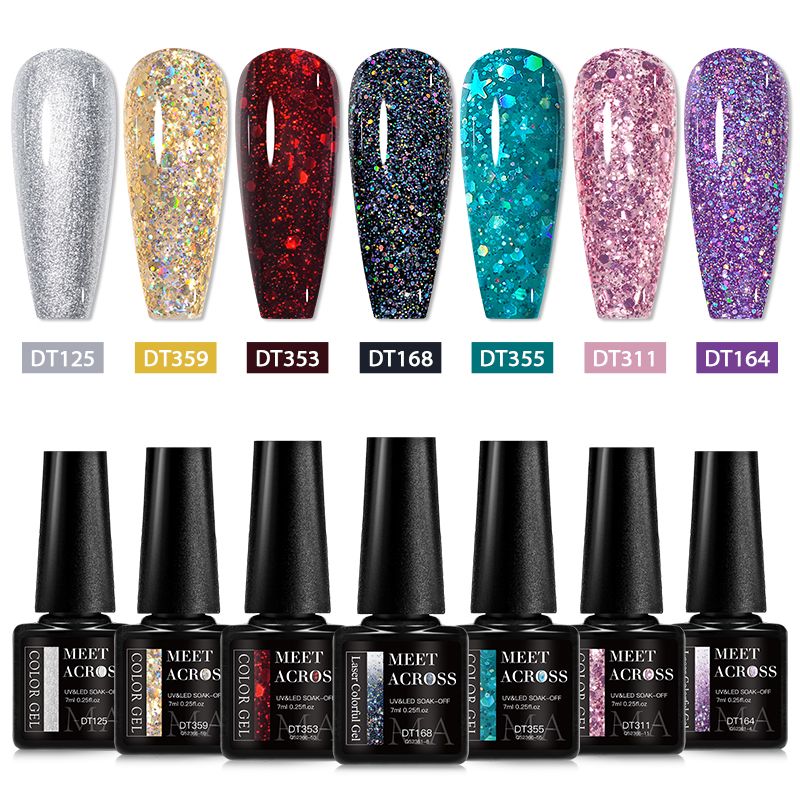 MEET ACROSS 7pcs Glitter Gel Nail Polish Set Nude Pink Reflective Soak Off UV Gel Kit Varnish Nail Supplies Manicure DIY Design