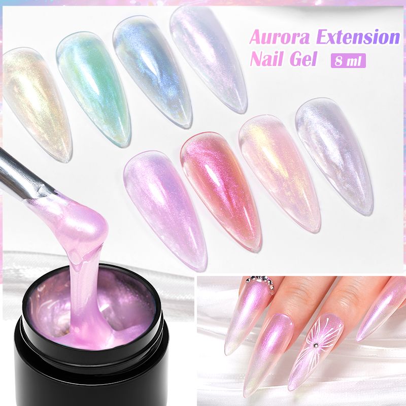 MEET ACROSS 8ml Light Violet Aurora Extension Nail Gel Polish Semi Permanent DIY Nail Art French Style UV Building Gel Varnish